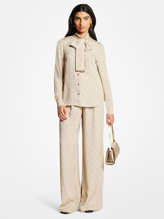 The brand’s iconic Empire Diamond jacquard makes this polished blouse stand out. Designed with a bold tie at the neckline, it infuses any look with vintage-inspired sophistication. Team it with everything from denim to the coordinating trousers.