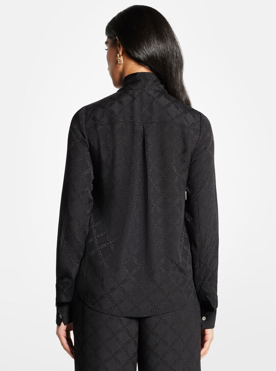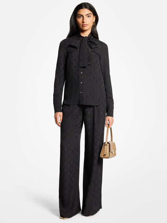 The brand’s iconic Empire Diamond jacquard makes this polished blouse stand out. Designed with a bold tie at the neckline, it infuses any look with vintage-inspired sophistication. Team it with everything from denim to the coordinating trousers.