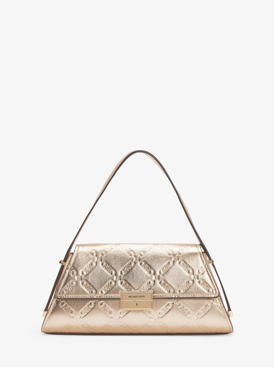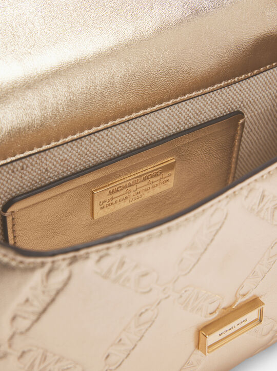 حقيبة كتف لودو متوسطة الحجم من الجلد المعدني المنقوش بالألماس