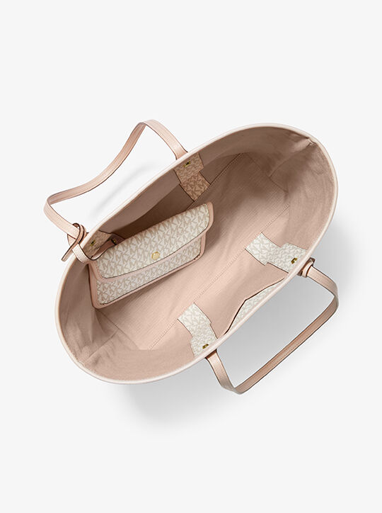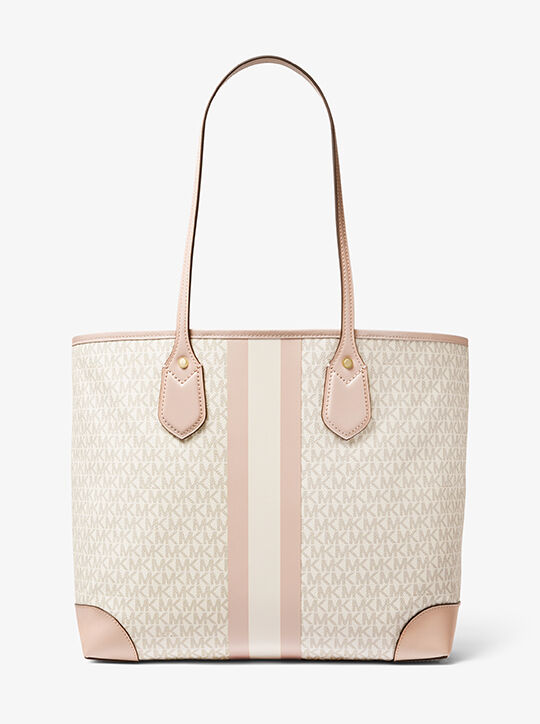 Michael Michael Kors حقيبة يد إيفا كبيرة مخططة بشعار الماركة