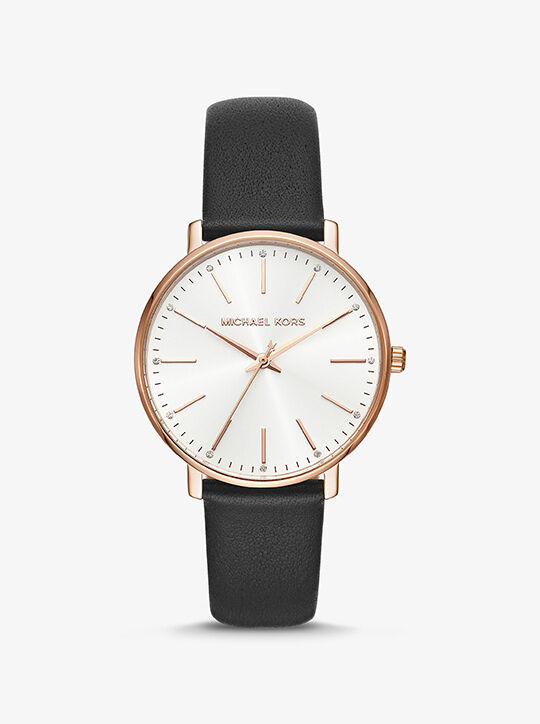 Michael Michael Kors ساعة بيبر جلدية ذهبية ووردية