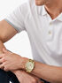 تتميز ساعة مايكل كورس هذه بقرص بلون الشمبانيا مثبت على علبة فولاذية مطلية. سوار مطابق يكمل الإطلالة.