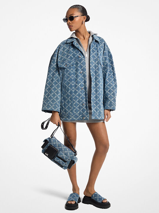 ستتجه كل الأنظار إلى سترة الدنيم ذات الشعار الماركة هذه - وهي أسلوب مثالي لارتدائها في أيام العطلات. تم تصميمها لتناسب المقاس الكبير، وهي مزينة بأزرار لامعة وجيوب على الصدر لحمل الضروريات الصغيرة.