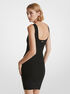 صنع هذا الفستان من الفيسكوز المطاطي الذي يعانق الجسم ونقش بمهارة شعار "MK"، وهو متعدد الاستخدامات إلى ما لا نهاية. يتميز الفستان بفتحة رقبة مربعة جذابة عالميا، بينما تضفي مغرفة عميقة في الخلف لمسة نهائية جذابة.