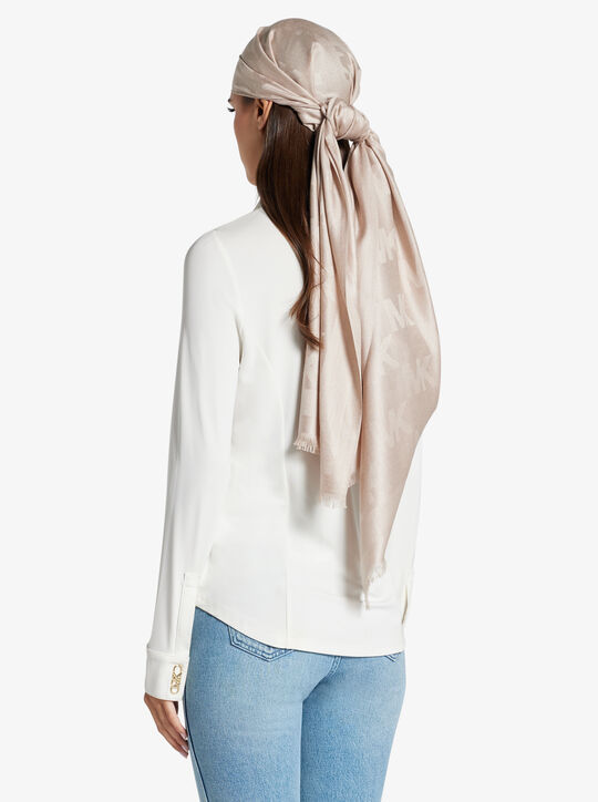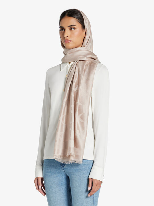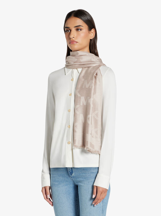هذا الوشاح مصنوع من مزيج مودال، مما يجعله ناعمًا ودافئًا عند ملامسة البشرة. مزود بأطراف متطايرة، يتميز هذا الإكسسوار الأنيق بإصدار بلون موحد من أحرف MK الأولى وشكل مستطيل يوفر خيارات تنسيق لا حصر لها.