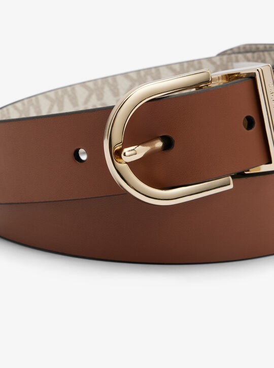 Featuring our Signature logo print, this belt reverses to a solid underside—either brown or black—for added versatility. It’s available in both gold-tone and silver-tone hardware to match your mood. Wear it with dark denim for a sophisticated touch.