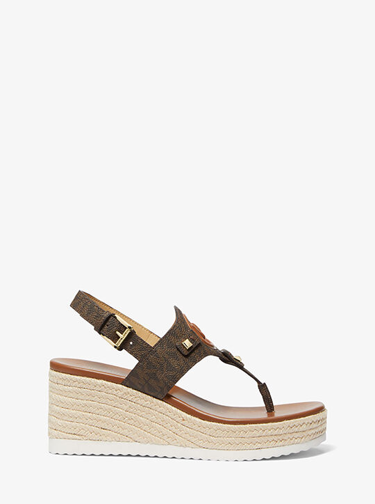 Michael Kors Outlet Aubrey Cutout Signature Logo Wedge Sandal