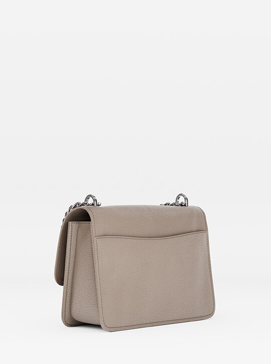 حقيبة كلير الأنيقة والمدمجة هي حقيبة اليد الأبرز لهذا الموسم. مصنوعة من جلد محبب بتصميم قابل للطي مع قفل كبس، وتتميز بشكلها المنظم وجيبين سهلي الفتح. اضبطي حزام الكتف الشبكي على الطول المطلوب لارتدائه بحرية.