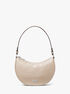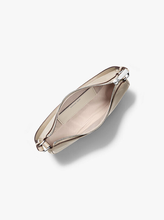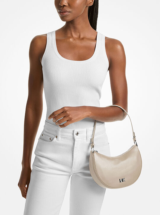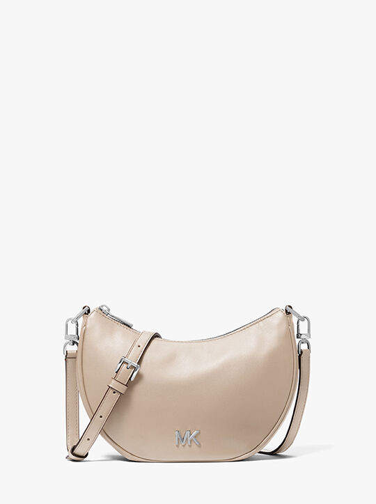 This chic half-moon Kyla pochette is made from supple leather and punctuated with silver-tone MK hardware. Slip the slim silhouette on your shoulder for a night out, and use the optional crossbody strap to keep your hands free for a day on the go. Either way, it’s sure to earn compliments.