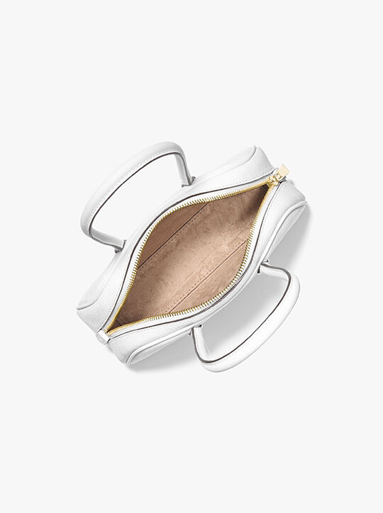 • Satchel • Pebbled leather • 100% leather • Gold-tone hardware • 9.75”W X 5”H X 3”D • Handle drop: 6.5” • Lining: 100% polyester • Zip fastening • Dust bag not included • Imported