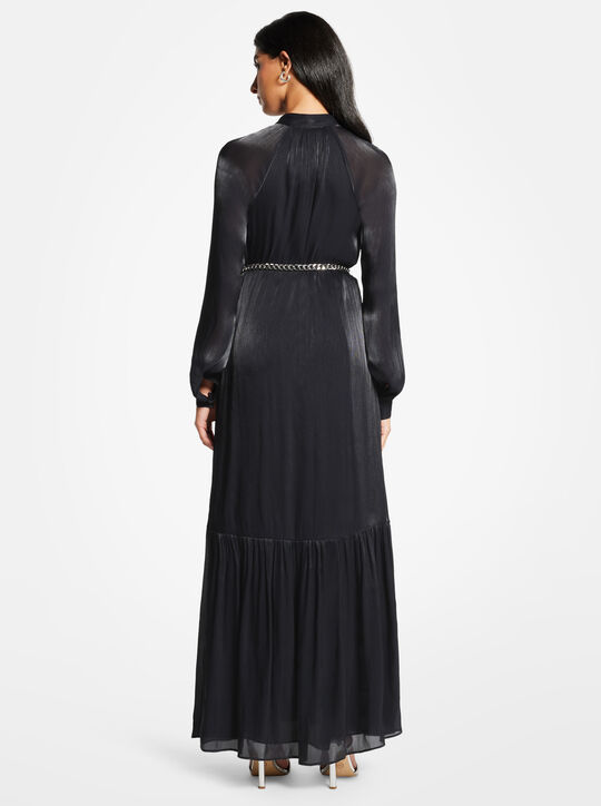 Metallic Crinkled Georgette Belted Kaftan Dress
