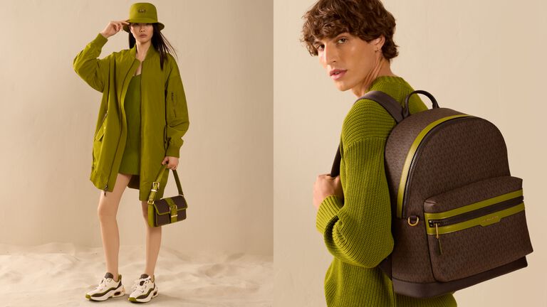 Logo prints are the epitome of heritage style, and this season's utilitarian-chic silhouettes feature an eye-catching stripe of on-trend meadow green.