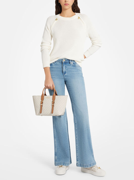 A wide bucket shape and belted details combine to sophisticated effect on our Moore satchel. Crafted from logo-print canvas, this work-to-weekend style offers ultimate convenience with an open interior and a detachable crossbody strap for hands-free wear.