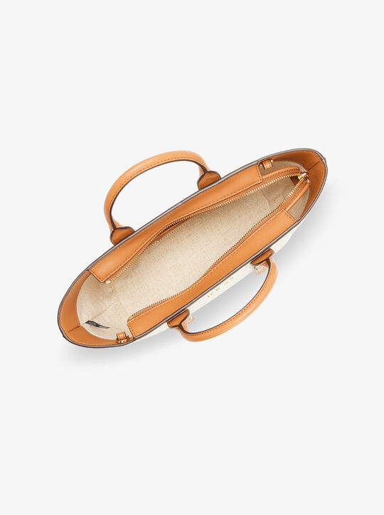 • Satchel • Logo-print canvas • 89.4% coated canvas/9.6% polyester/1% polyurethane • Trim: 75% polyurethane/25% polyester • Gold-tone hardware • 14.25”W X 7.25”H X 5”D • Handle drop: 3.75” • Adjustable strap: 21"-24" • Exterior details: detachable crossbody strap • Interior details: back slip pocket • Lining: 55% polyester/45% linen • Zip fastening • Dust bag not included • Imported