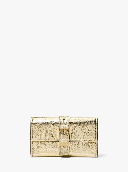 Nolita Medium Metallic Crackled Leather Tri-Fold Wallet