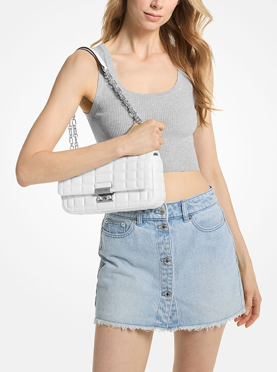 Our Tribeca bag proves you really can have it all, thanks to a chic, quilted silhouette that gives way to a roomy interior. Made from smooth leather, it comes with an adjustable crossbody strap that allows for hands-free wear. Match your jewelry to the silver-tone hardware.